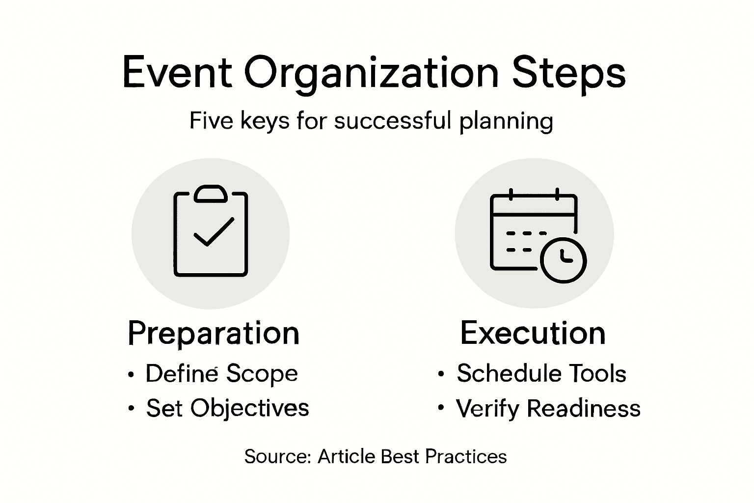 | 1. Define Clear Event Scope | Establish specific goals and target audiences using the SMART framework to guide your team effectively. |