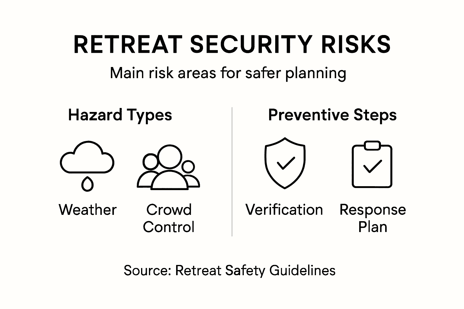 The practical outcome is a written security and risk management plan specific to your retreat that addresses identified hazards, documents your response procedures, and demonstrates that you've thought through potential problems. This document protects both your participants and your organization.
