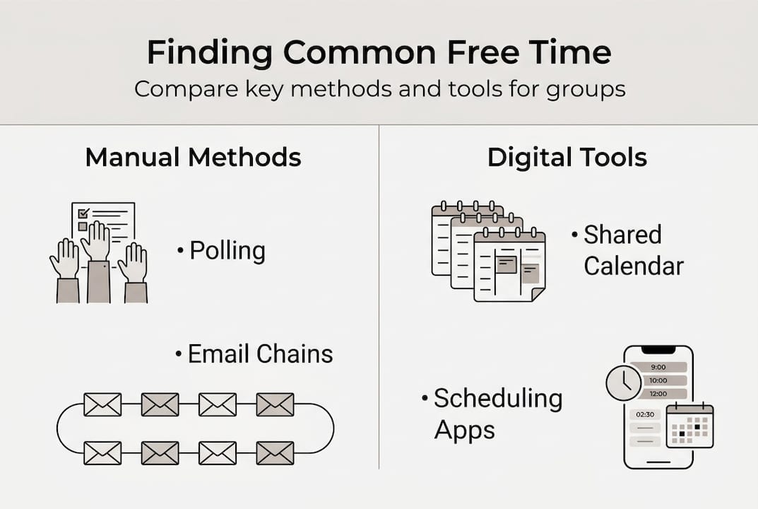Once you've collected everyone's schedules, you need a systematic approach to identify when the entire group is available. The method you choose depends on your group size and technical comfort level.