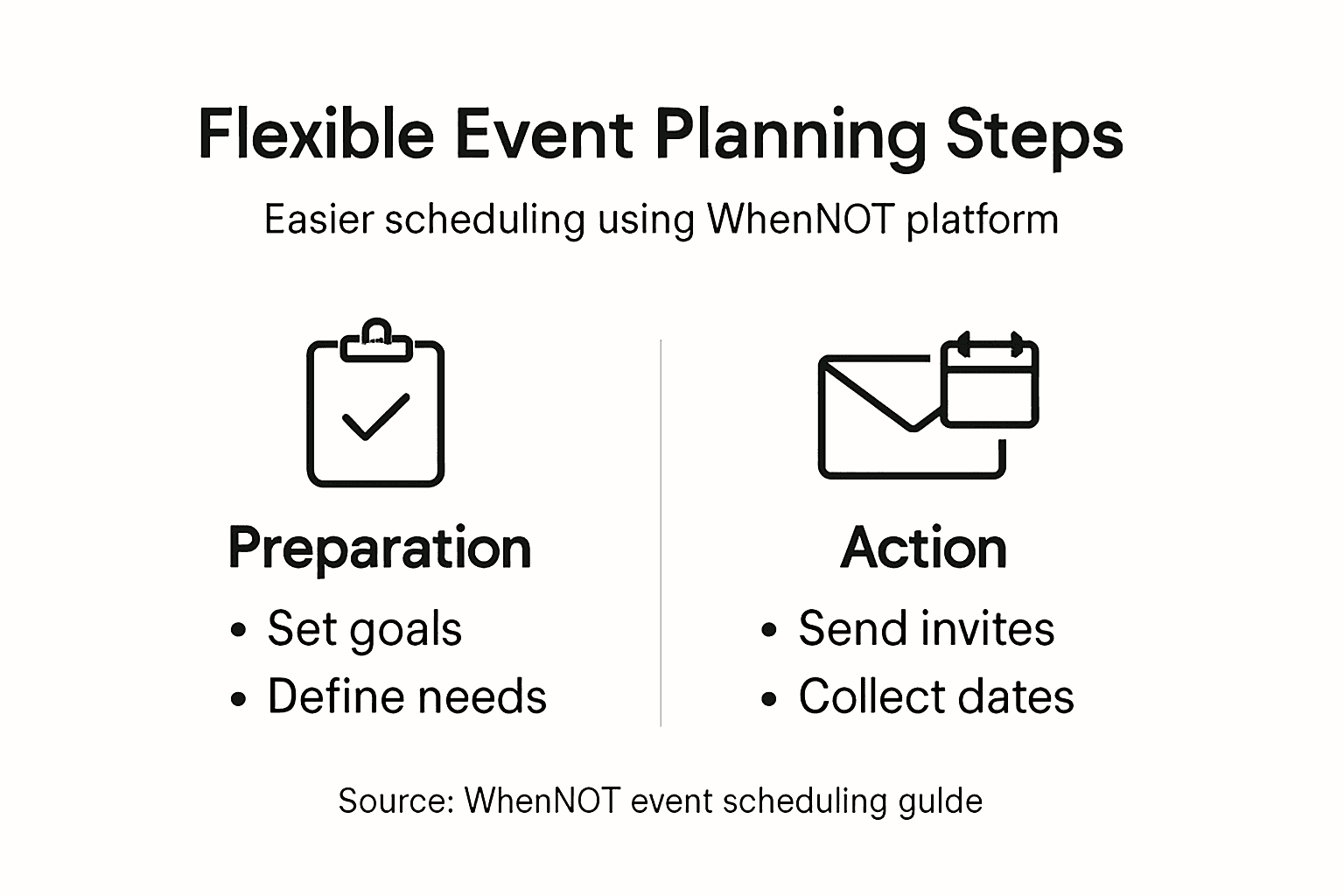 | 2. Use WhenNOT for scheduling | WhenNOT simplifies collecting participant unavailability, making it easy to identify optimal event dates without extensive back-and-forth communication. |