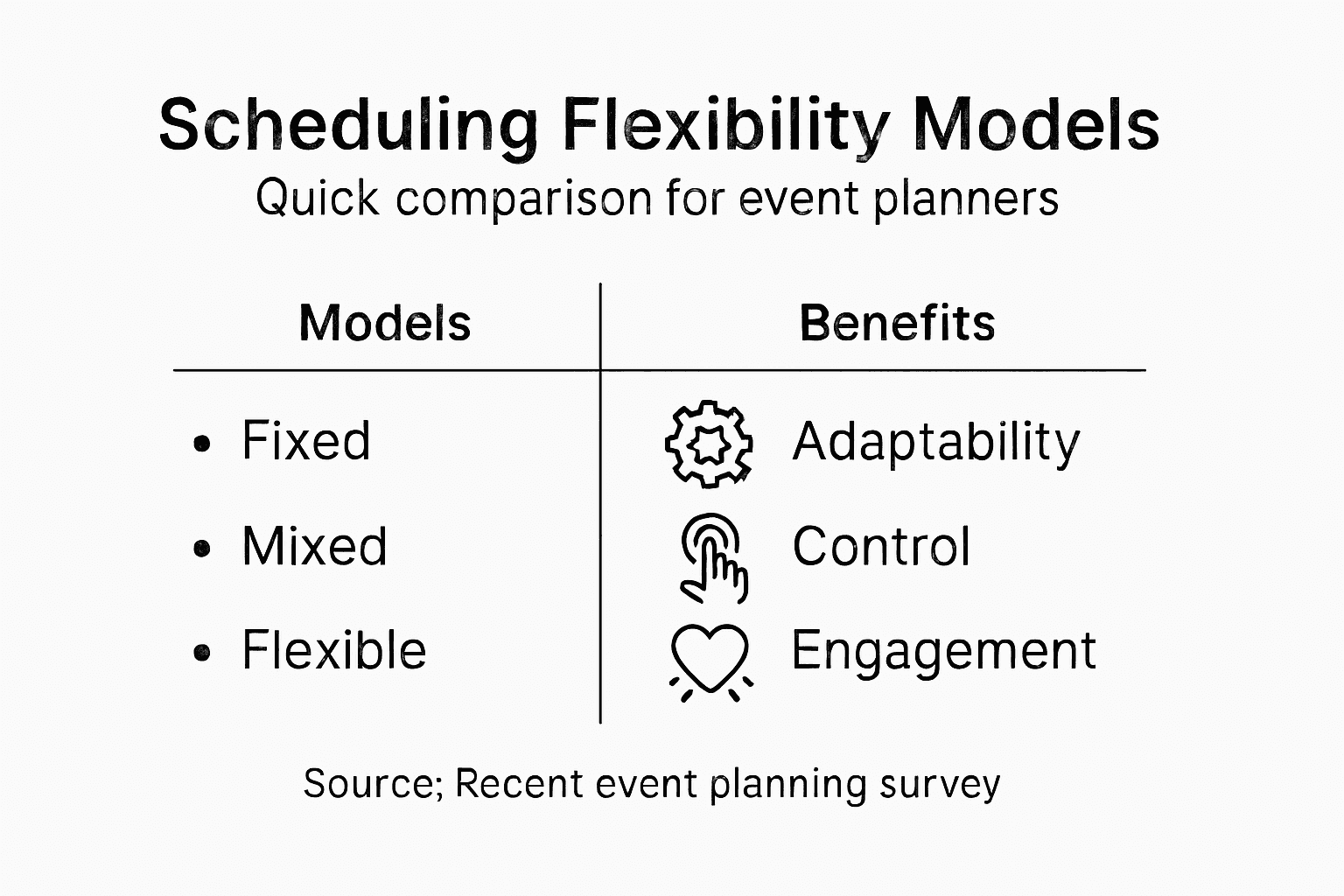 Flexible scheduling transforms event planning by creating dynamic frameworks that prioritize participant needs and organizational goals. Practical scheduling strategies enable on-demand access and short-term adjustments, allowing event coordinators to optimize participant engagement through more responsive planning approaches.