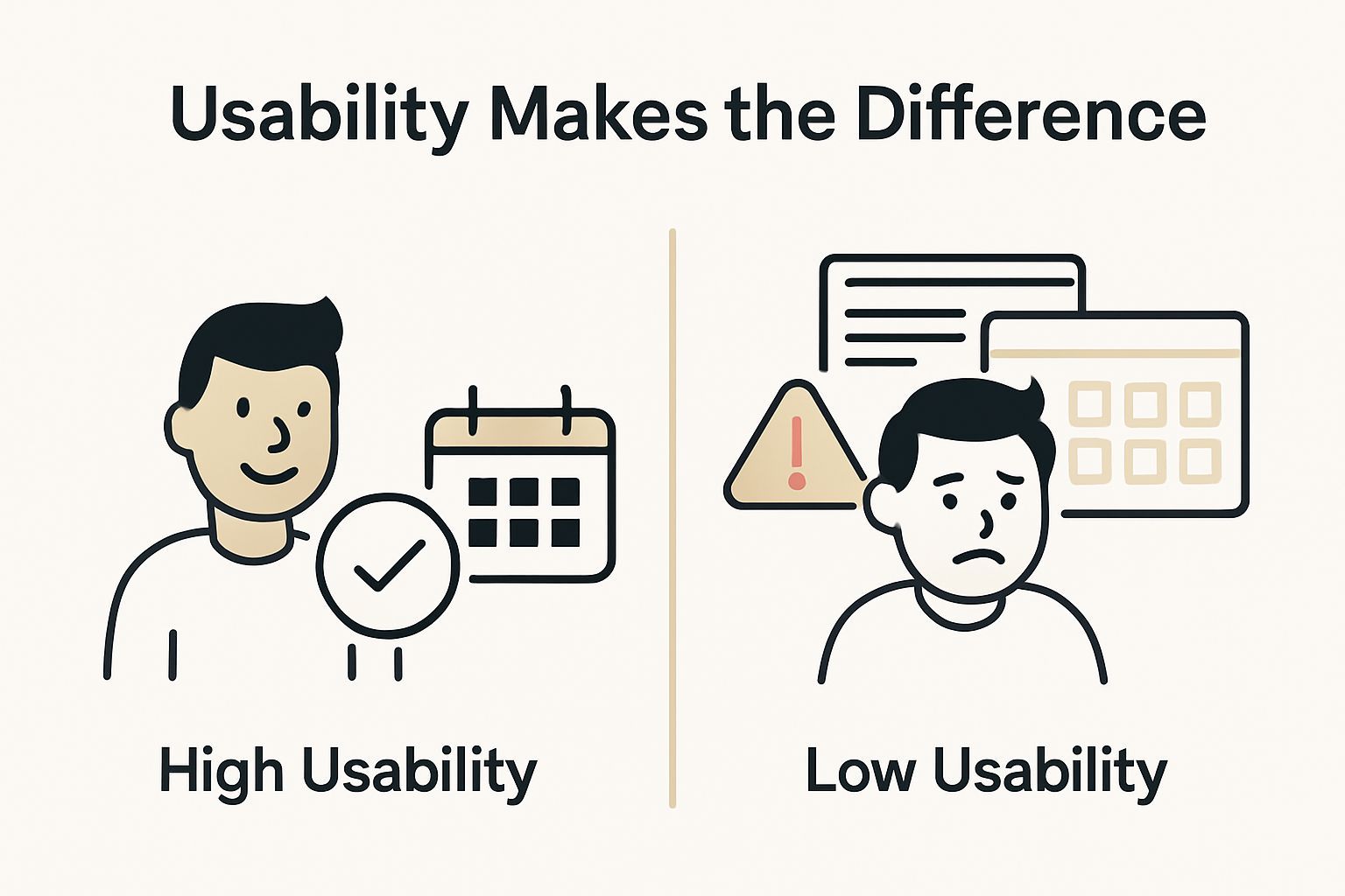This table compares the practical impacts of low versus high usability in scheduling tools, emphasizing outcomes described throughout the article.
