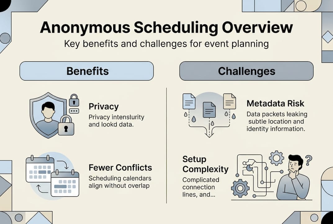 Most people think scheduling privacy means hiding who voted for which date, but that's only half the story. True anonymous scheduling protects not just your preferences but your identity, metadata, and participation patterns from being tracked or linked back to you. As group event planning becomes more complex and privacy concerns grow, understanding how anonymous scheduling works can transform the way you coordinate corporate retreats, family gatherings, and community activities. This guide explains what anonymous scheduling really means, how it differs from standard tools, and why it matters for your next group event.